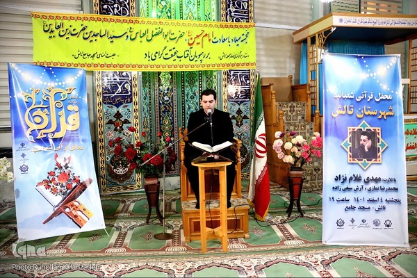 نخستین محفل قرآنی اعیاد شعبانیه با تلاوت مهدی غلامنژاد، محمدرضا نمازی و آرش سیفیزاده شب گذشته، چهار اسفندماه در مسجد جامع تالش برگزار شد.
