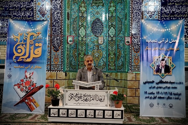 محفل انس با قرآن شعبانیه با تلاوت سیدمصطفی حسینی، محمد چولابی و مهدی عبرتی، قاریان بینالمللی و ممتاز ملی شامگاه، ۱۵ اسفندماه در مسجد جامع صاحب الزمان(عج) گیل پردسر بخش سنگر شهرستان رشت برگزار شد.